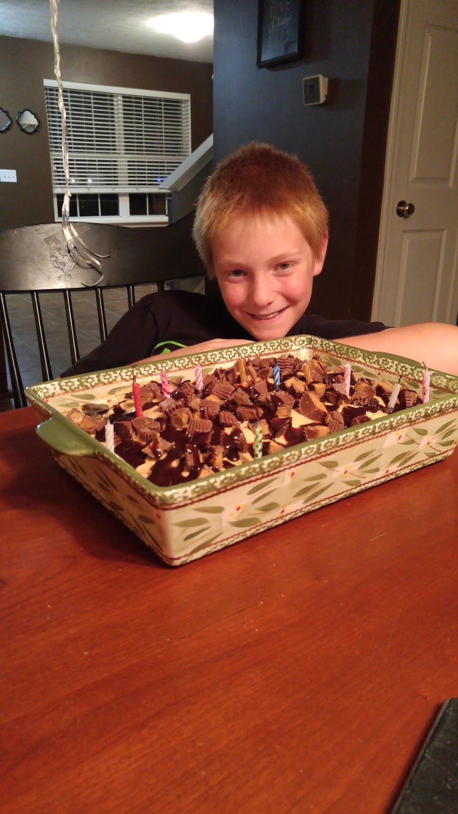 Our boy asked for the Reece's cake that I've made before. Talk about a sugar rush.